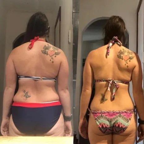 Doing the BASE program with Coach JD has been amazing. The customized workout program fits my busy schedule, and the app helps me stay on track with calories and protein visually. JD is always there to answer questions and provide assistance. The Before/After feature for progress pics is a highlight, showcasing the incredible changes in my body. Starting at a size 12-14, I'm now a comfortable size 8 in the 50s weight range. I feel fitter, look better, and have more energy as a mother!